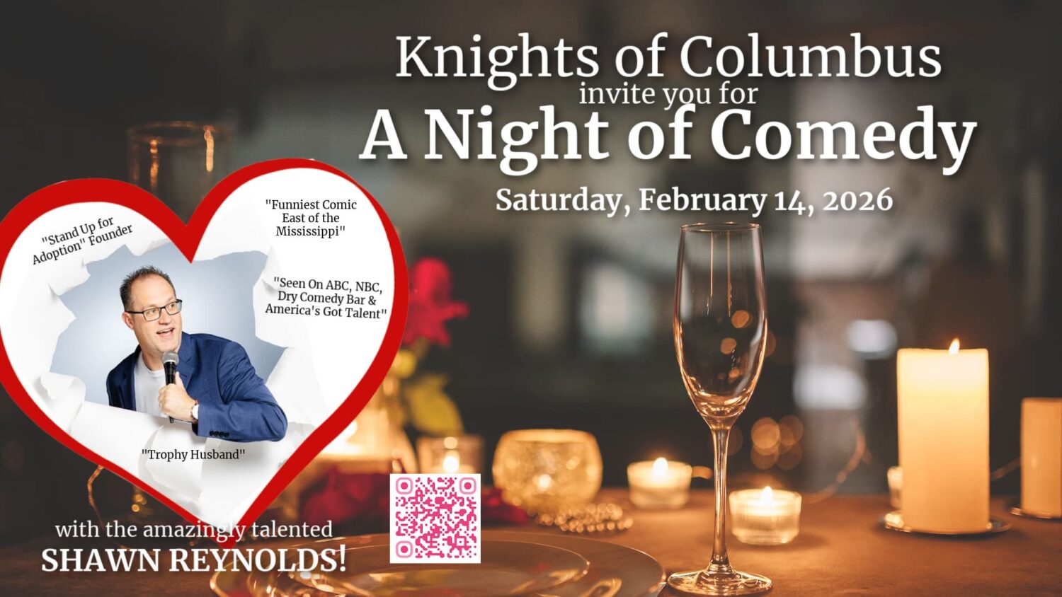 The Knights of Columbus Council 7612 invites you for an Evening of Laughter with the Amazingly Talented Comedian Shawn Reynolds!